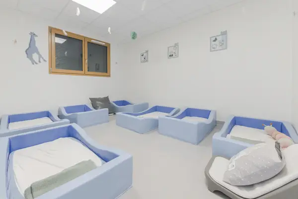 Le sommeil en collectivité ne ressemble pas au sommeil à la maison, mais il peut être tout aussi réparateur quand il est bien accompagné. L'équipe veille à individualiser l'endormissement autant que possible : rituel doux, objet transitionnel accessible, présence rassurante d'une professionnelle connue. Les espaces de repos sont conçus pour limiter les stimulations et favoriser la détente.