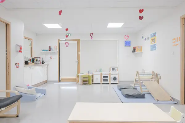 Ouverte depuis août 2023, la micro-crèche de Montagny-les-Lanches s'étend sur 143 m² intérieurs avec la climatisation pour assurer confort et fraîcheur en toute saison. L'espace extérieur de 200 m² est l'un des atouts majeurs de la structure : les enfants y bénéficient d'une vue dégagée sur la vallée et les montagnes, un panorama qui éveille naturellement la curiosité et invite à l'observation. À l'intérieur, les couleurs douces apaisent et créent une ambiance propice au calme et à la concentration. Le dortoir, avec ses petits lits bleus soigneusement alignés, invite chaque enfant à un repos réparateur. Les espaces de jeux sont pensés pour encourager la mobilité des plus jeunes : tapis d'éveil, structures basses à escalader, coussins de motricité. Les jouets proposés — puzzles en bois, figurines d'animaux, livres illustrés — soutiennent le développement cognitif et imaginaire des jeunes pousses. Anais, éducatrice de jeunes enfants et directrice de la crèche, veille à construire avec chaque famille un projet d'accueil individualisé, en respectant les habitudes de vie de chacun. La structure est ouverte de 7h45 à 18h30.