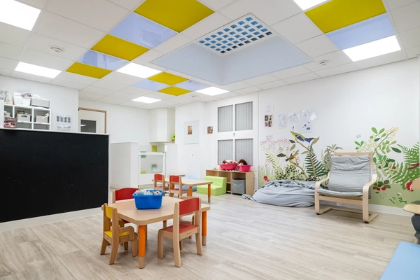 Les jouets proposés sont variés et soigneusement choisis : jeux d'éveil pour les bébés, matériaux artistiques, livres cartonnés, jouets de rôle pour stimuler l'imagination. L'espace est organisé en zones distinctes : coin repos pour les siestes, espace de jeux libres et zone d'activités structurées.